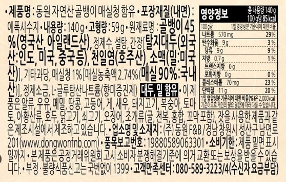 | 포장단위별 내용물의 용량(중량), 수량 | 140g x 2개 | 원재료명 및 함량 | 컨텐츠 참조 |