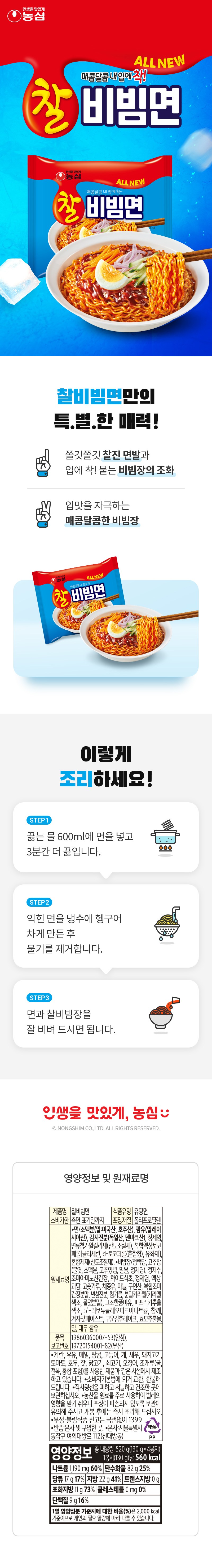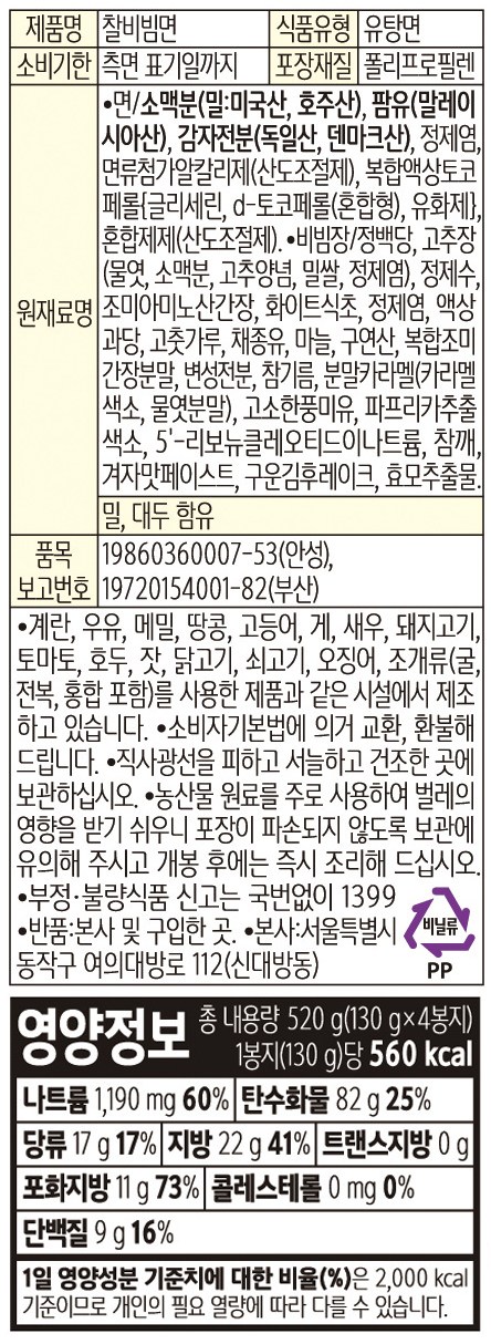 | 제품명 | 찰비빔면 | 식품의 유형 | 유탕면 |