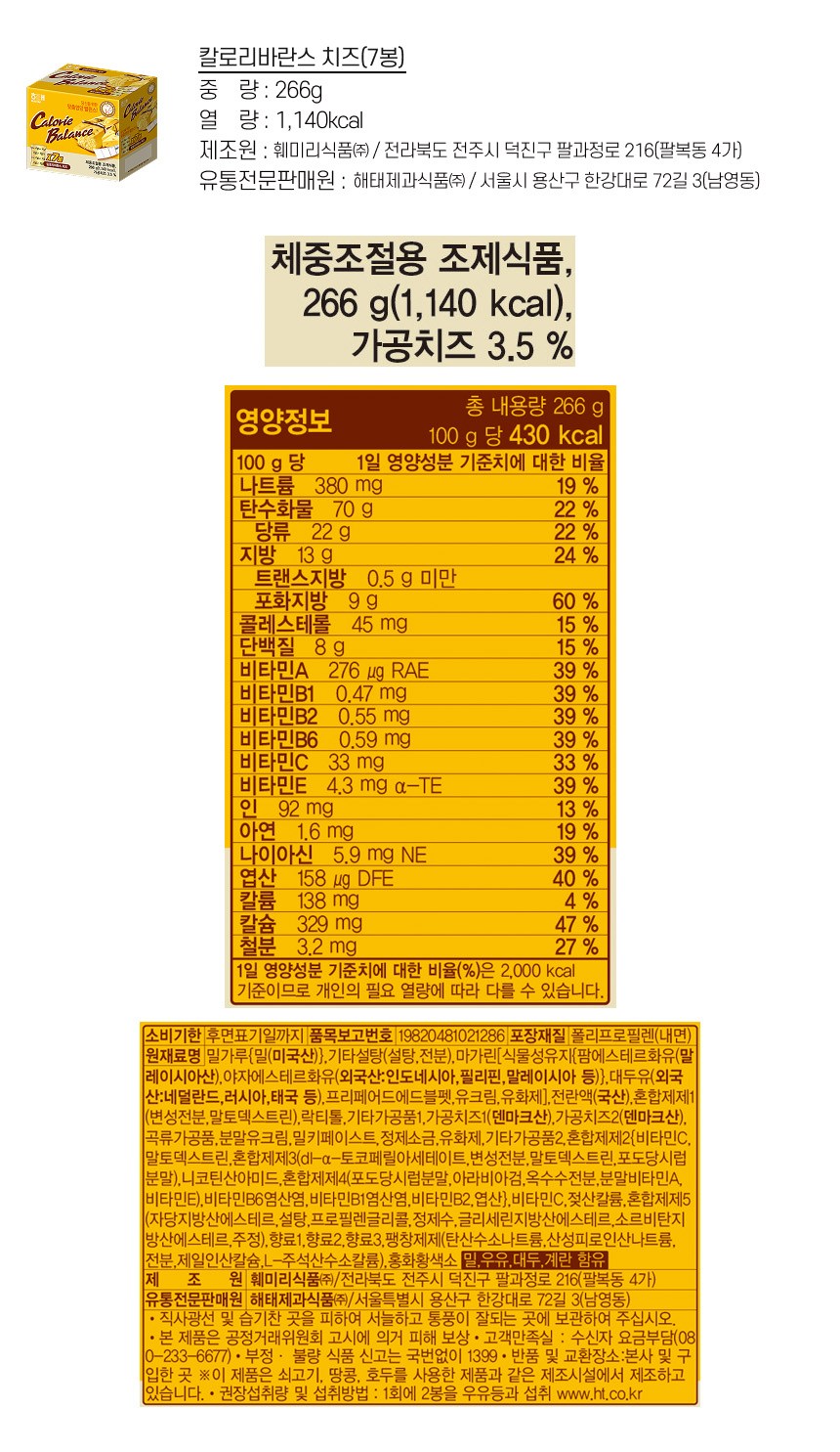 | 제품명 | 칼로리바란스 치즈 | 식품의 유형 | 컨텐츠 참조 |