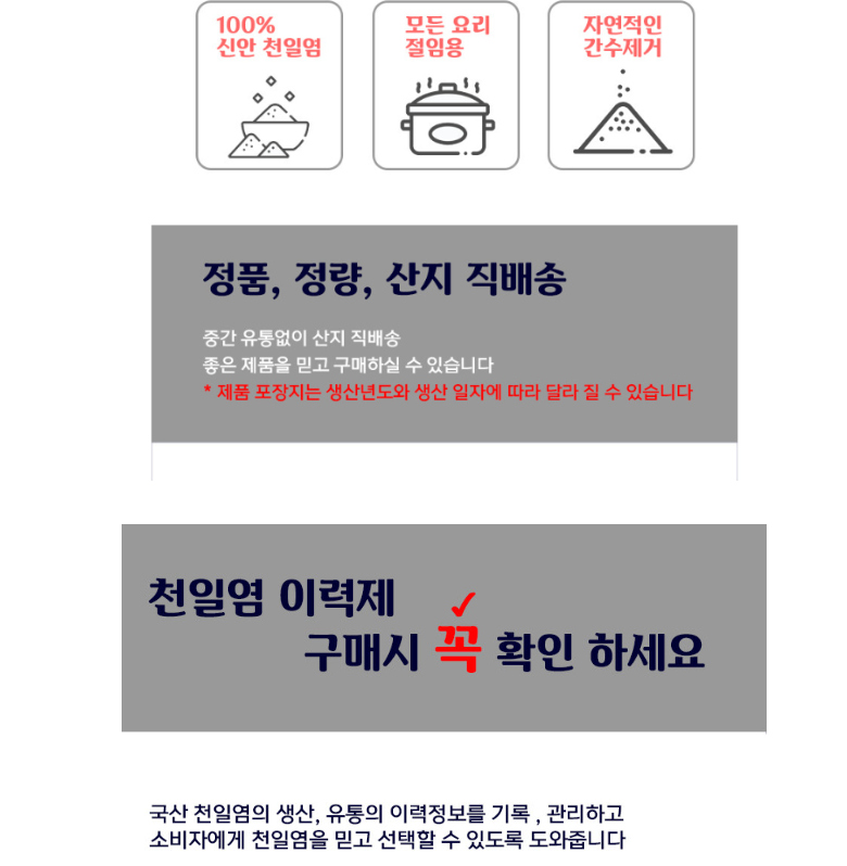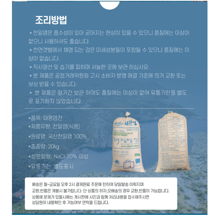 2025년 생산 햇소금 간수뺀 소금 발송합니다 (랜덤으로 발송하다 보니 간수가 조금 덜빠진 상품이 발송할수 있습니다 ) 비닐포장 밑부분을 조금 잘라서 세워 놓으시며 덜빠진 간수 배출됩니다