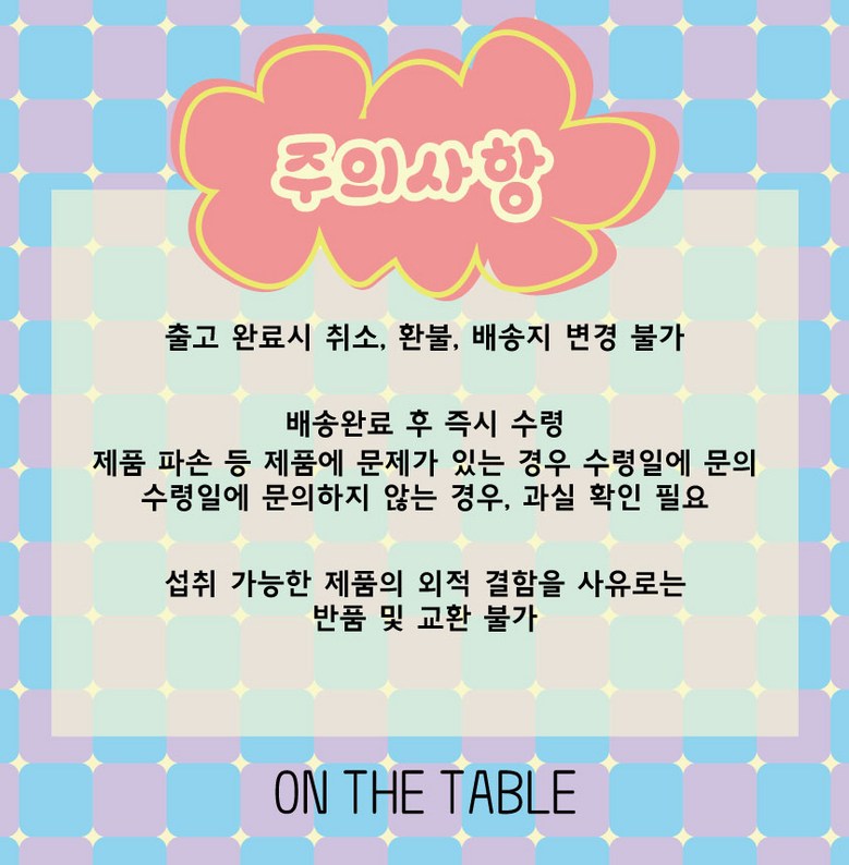 - 상품문의 및 후기게시판을 통해 취소나 환불, 반품 등은 처리되지 않습니다.