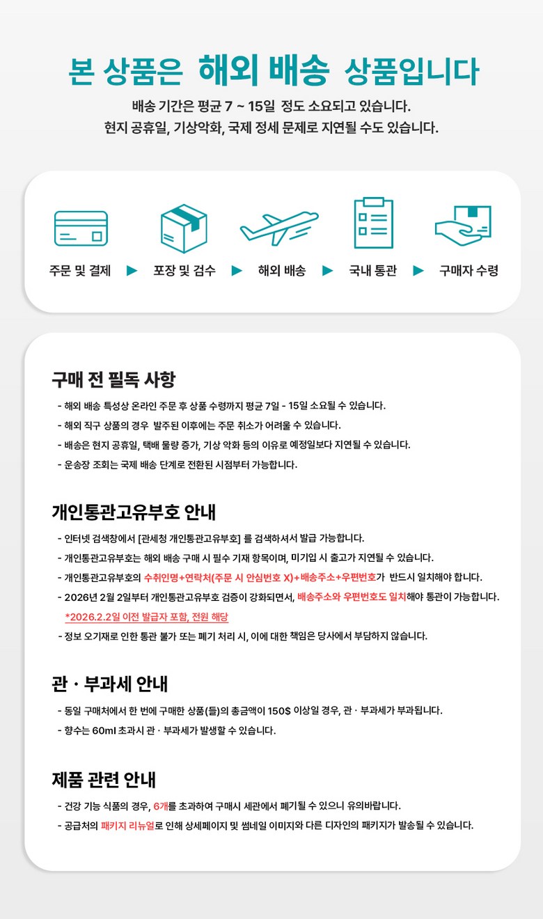 - 법규 개정에 따라 개인통관고유부호 검증 절차가 강화되었습니다.