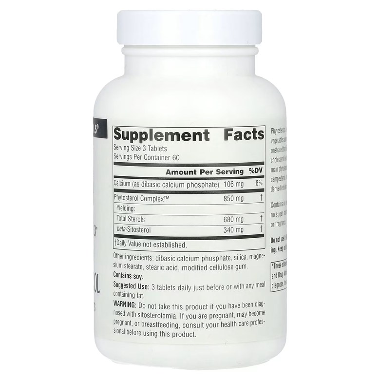 베타-시토스테롤 식이 보조제입니다. 1인분 당 칼슘 151mg, 대두 껍질 850mg, 베타-시토스테롤 340mg 등을 제공합니다. 실리카, 스테아린산 마그네슘, 스테아르산, 개량 셀룰로오스 검 등이 함유되어 있습니다.