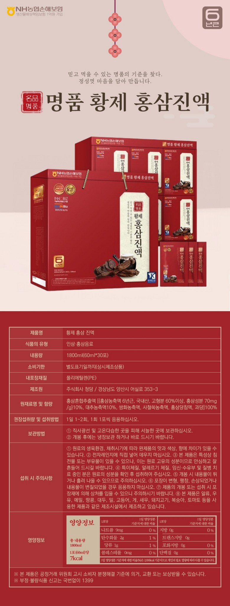 | 제품명 | 황제 홍삼진액 | 식품의 유형 | 상품 상세페이지 참조 |