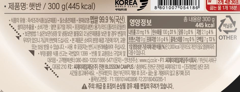 - 섭취방법: 즉석완조리식품