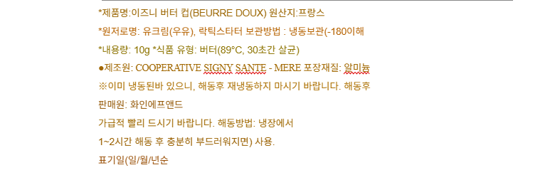 | 생산자 및 소재지 | 상품 상세페이지 참조 | 제조연월일, 소비기한 또는 품질유지기한 | 상품 상세페이지 참조 |