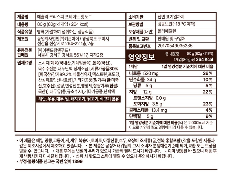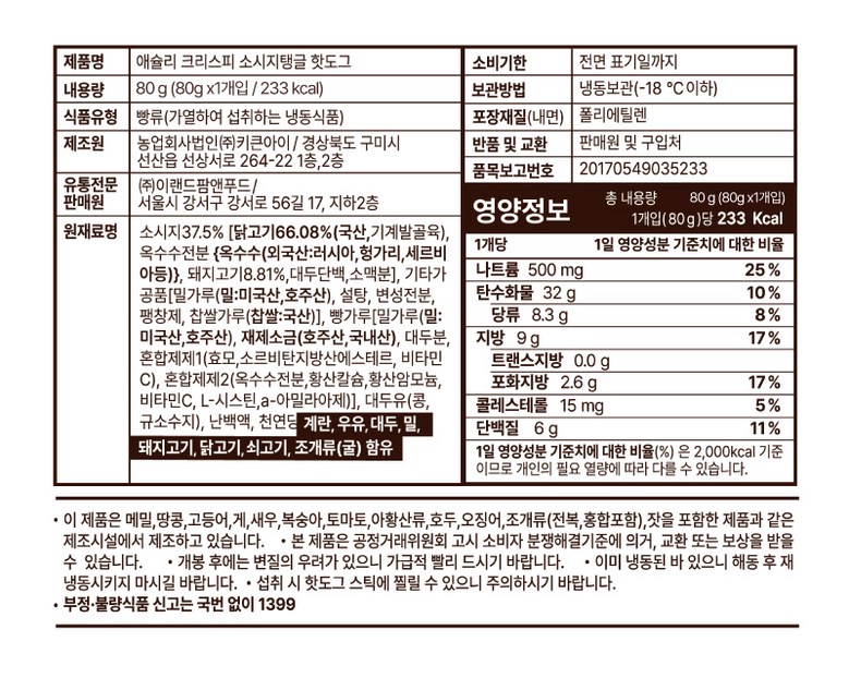 | 제품명 | 상품 상세페이지 참조 | 식품의 유형 | 상품 상세페이지 참조 |