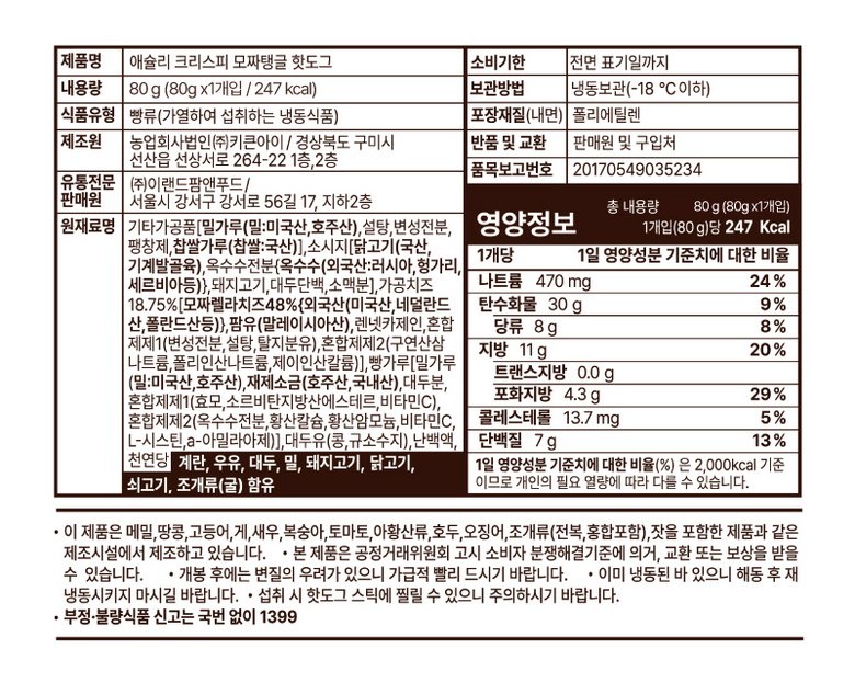| 제품명 | 상품 상세페이지 참조 | 식품의 유형 | 상품 상세페이지 참조 |