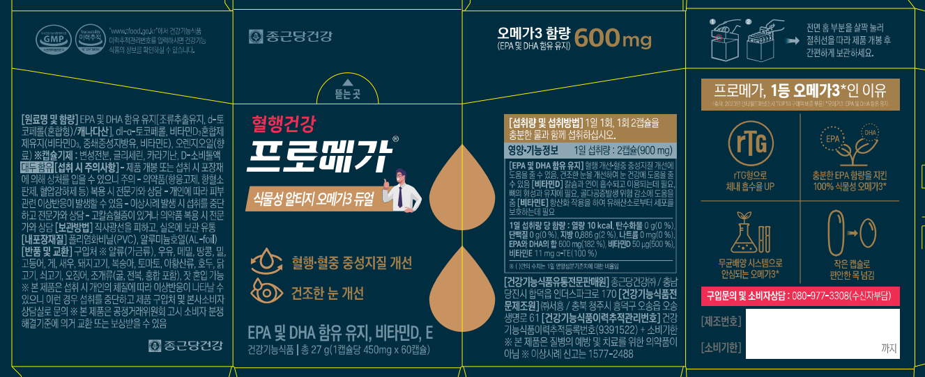 | 제품명 | 프로메가 식물성 알티지 오메가3 듀얼 | 제조업소의 명칭과 소재지 | 컨텐츠 참조 |