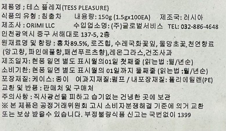 | 제조연월일, 소비기한 또는 품질유지기한 | 상품 상세페이지 참조 | 세부 품목군별 표시사항 | 상품 상세페이지 참조 |