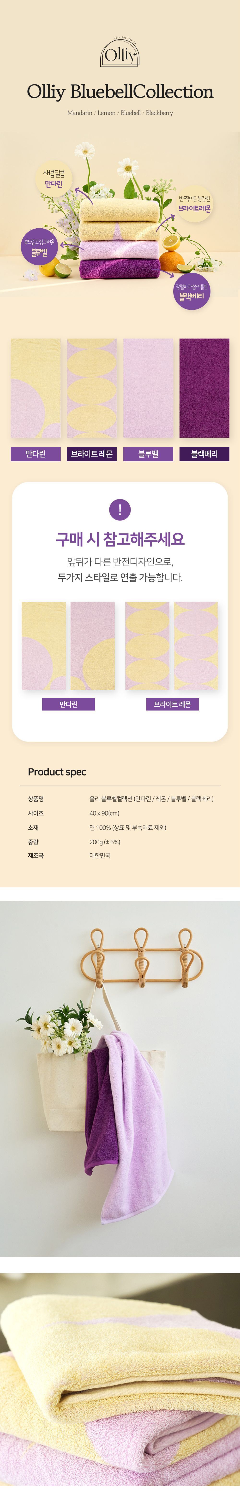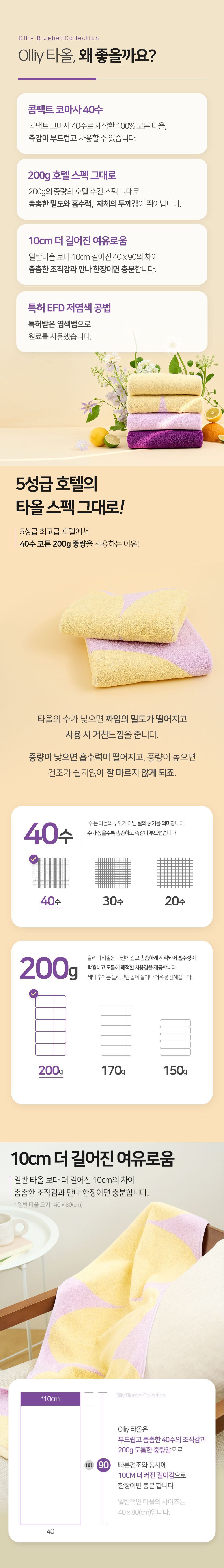 올리 블루벨컬렉션 수건 200g 40수 코마사