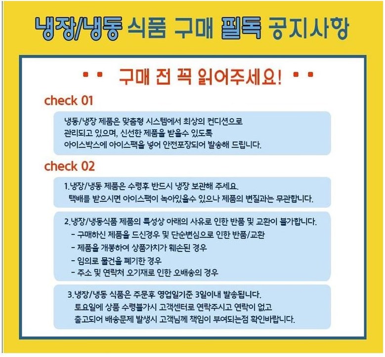 - ㆍ교환/반품에 관한 일반적인 사항은 판매자가 제시사항보다 관계법령이 우선합니다.
