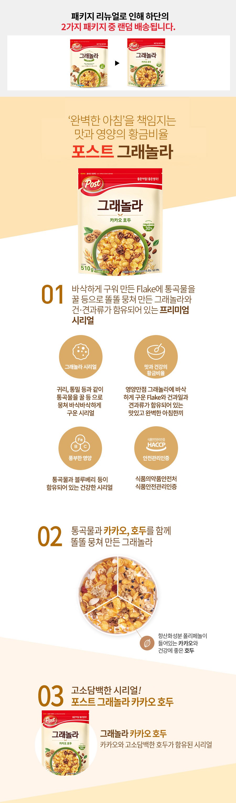 | 제품명 | 포스트 그래놀라 카카오 호두 | 식품의 유형 | 시리얼류 |