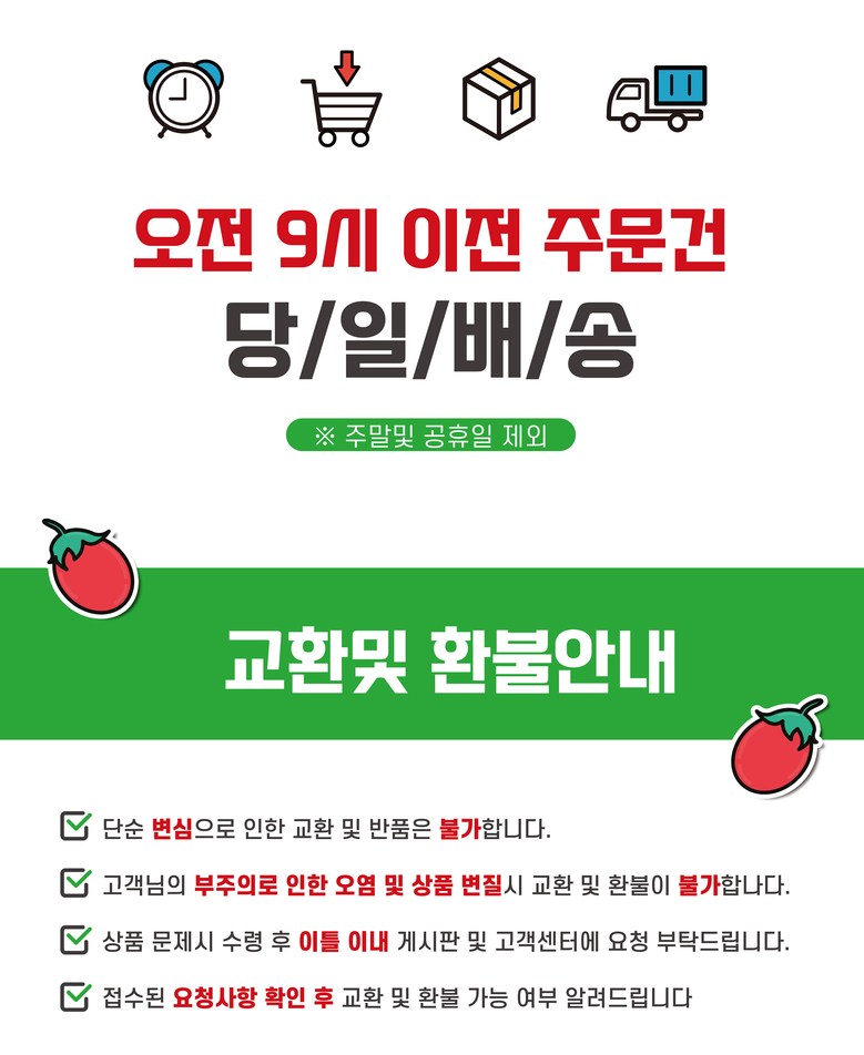 | 배송방법 | 신선/냉장/냉동 | 배송비 | 무료배송 - 도서산간 지역 배송불가 |