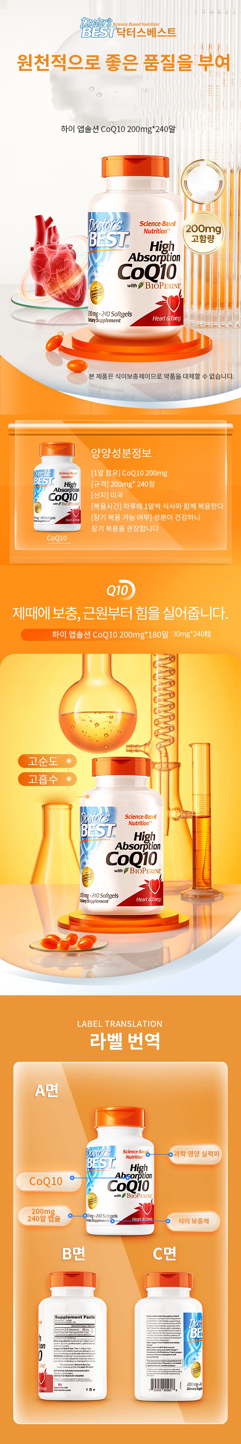 | 제품명 | 닥터스베스트 하이 앱솔션 CoQ10 200mg 바이오페린 소프트젤 | 식품의 유형 | 상품 상세페이지 참조 |
