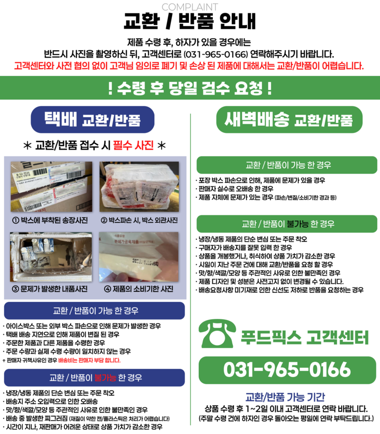 - ㆍ모니터 해상도의 차이로 인해 색상이나 이미지가 실제와 달라, 고객이 단순 변심으로 교환/반품을 무료로 요청하는 경우