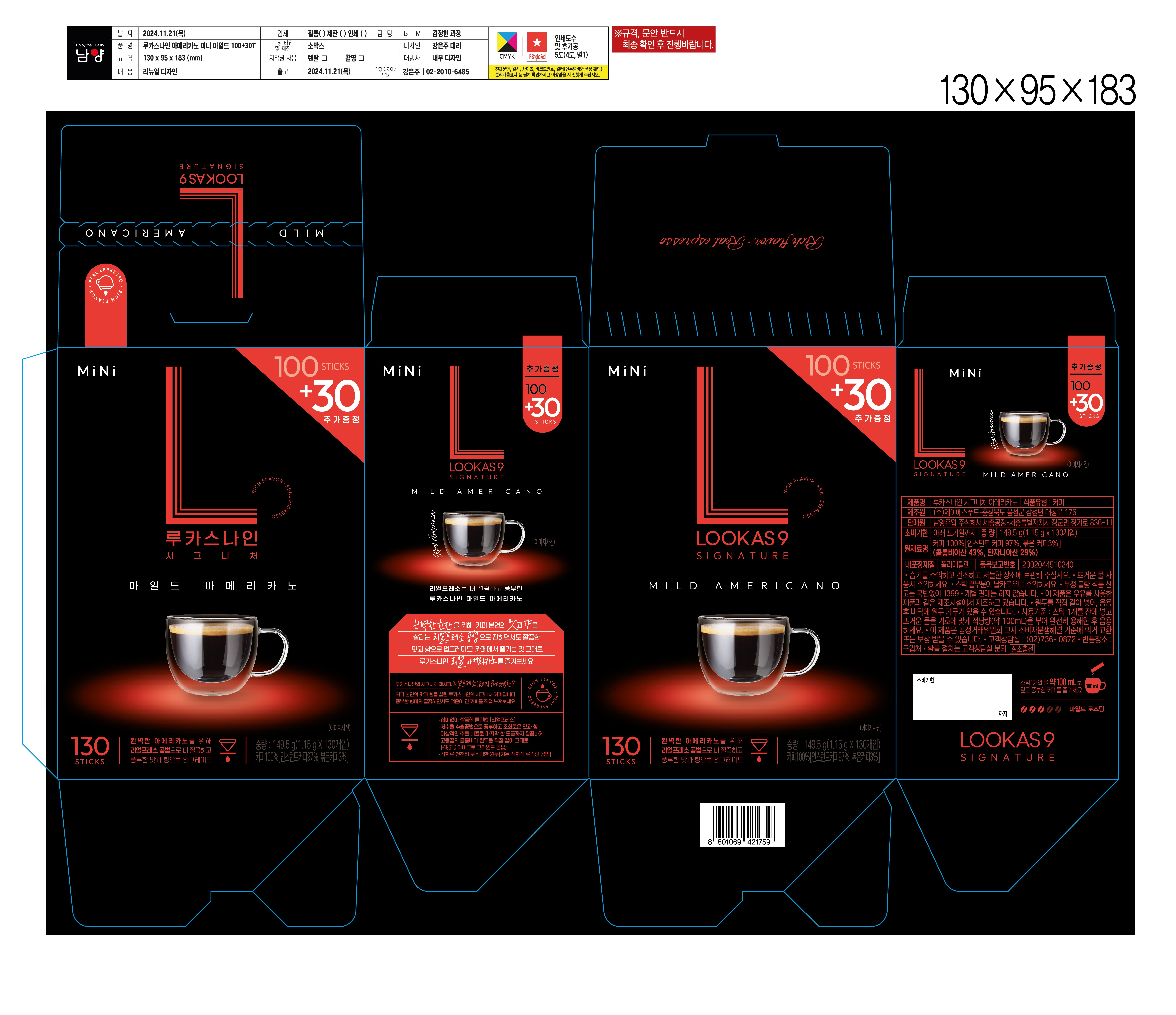 | 포장단위별 내용물의 용량(중량), 수량 | 130개입 x 2개 | 원재료명 및 함량 | 컨텐츠 참조 |