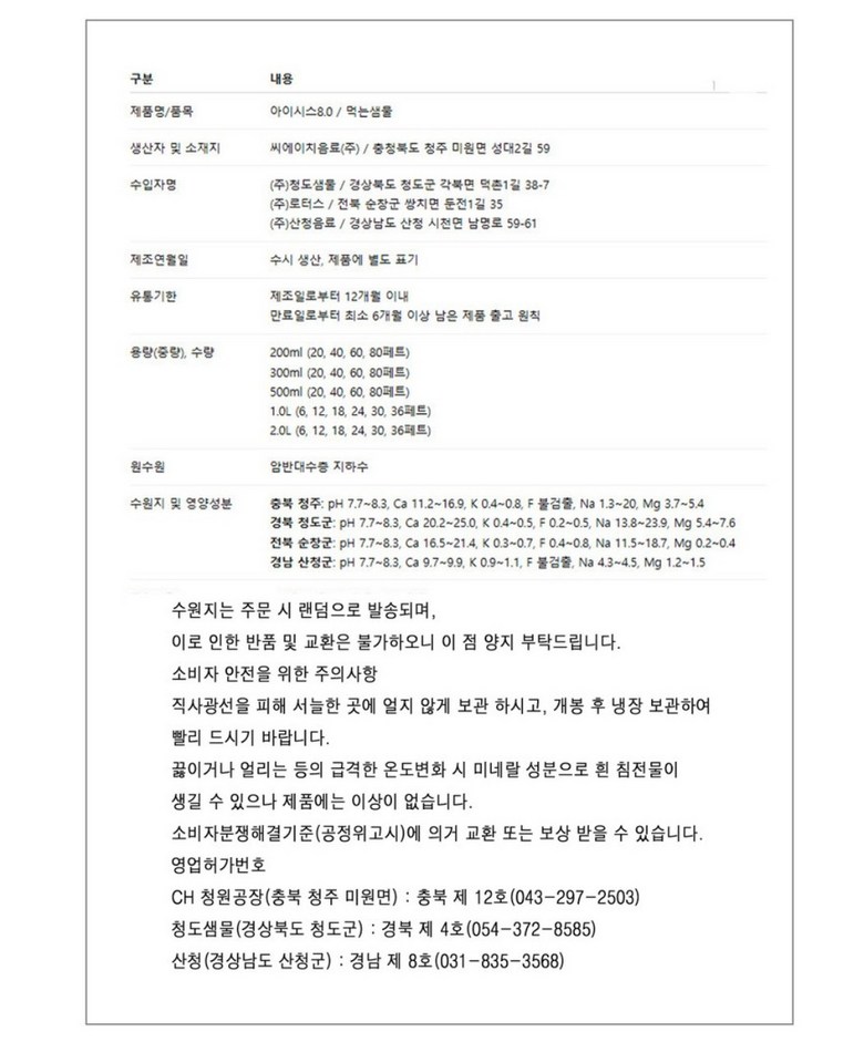 - 음료수 종류: 생수