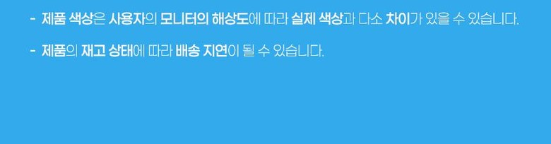 - ㆍ모니터 해상도의 차이로 인해 색상이나 이미지가 실제와 달라, 고객이 단순 변심으로 교환/반품을 무료로 요청하는 경우