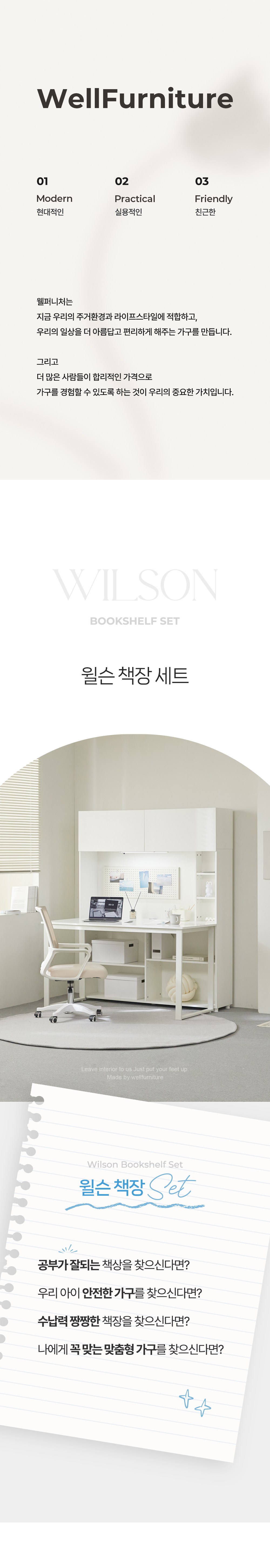 - 구성품: 책장 + 책상 + 타공판 + 이동서랍
