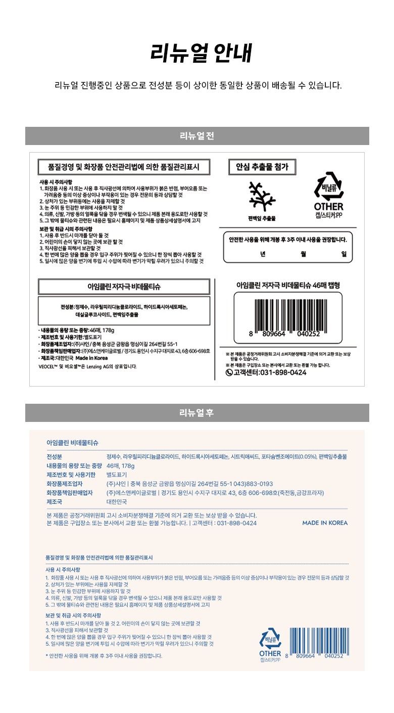 | 용량(중량) | 컨텐츠 참조 | 제품 주요 사양 | 모든 피부용 |
