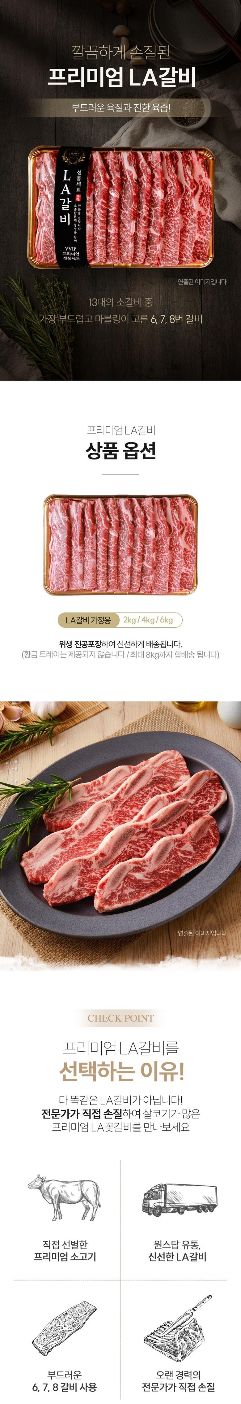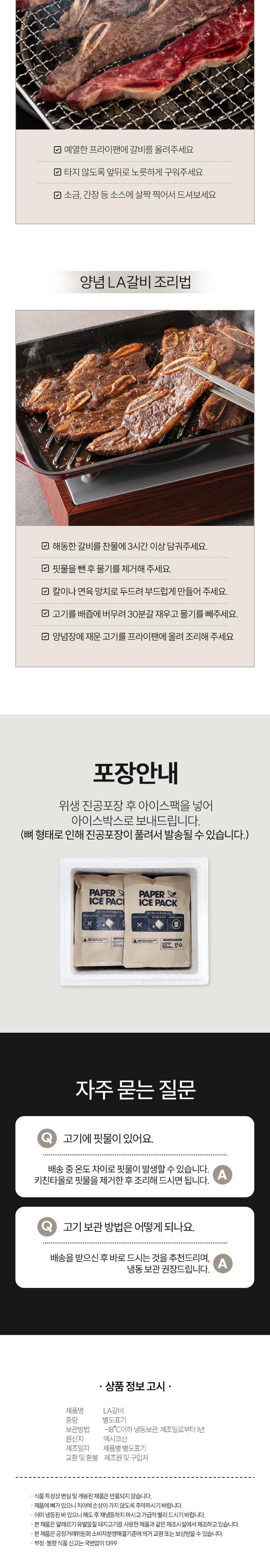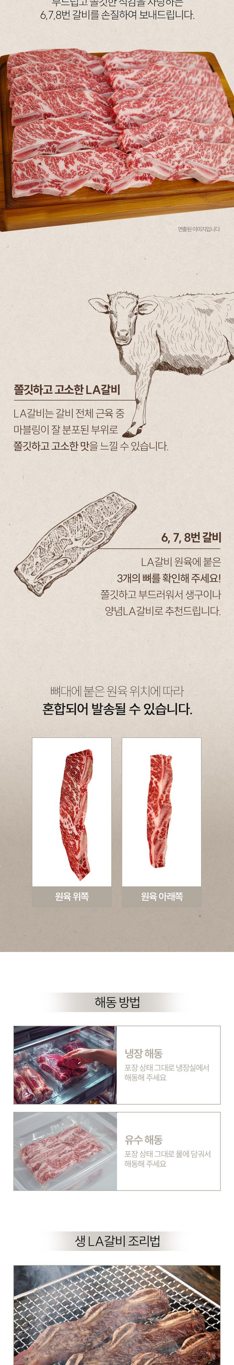 | 품목 또는 명칭 | LA갈비 냉동 | 포장단위별 내용물의 용량(중량),수량,크기 | 상품 상세페이지 참조 |