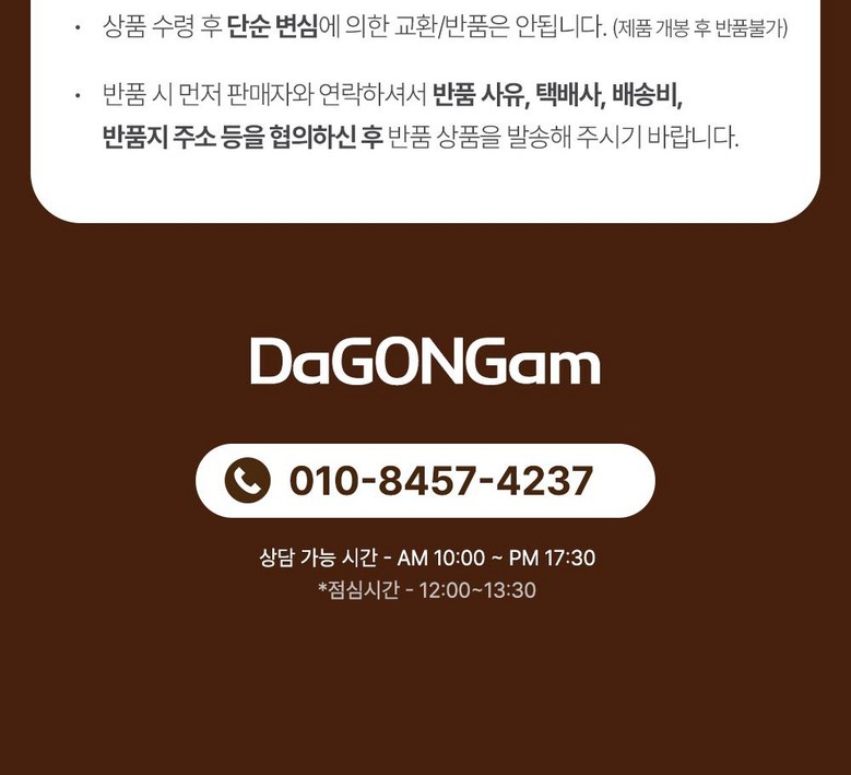 | 소비자상담 및 교환반품 문의 | 쿠팡고객센터 1577-7011 배송 및 환불/교환에 대한 문의는 마이쿠팡-고객센터 내 상담하기를 이용해주세요. | ||