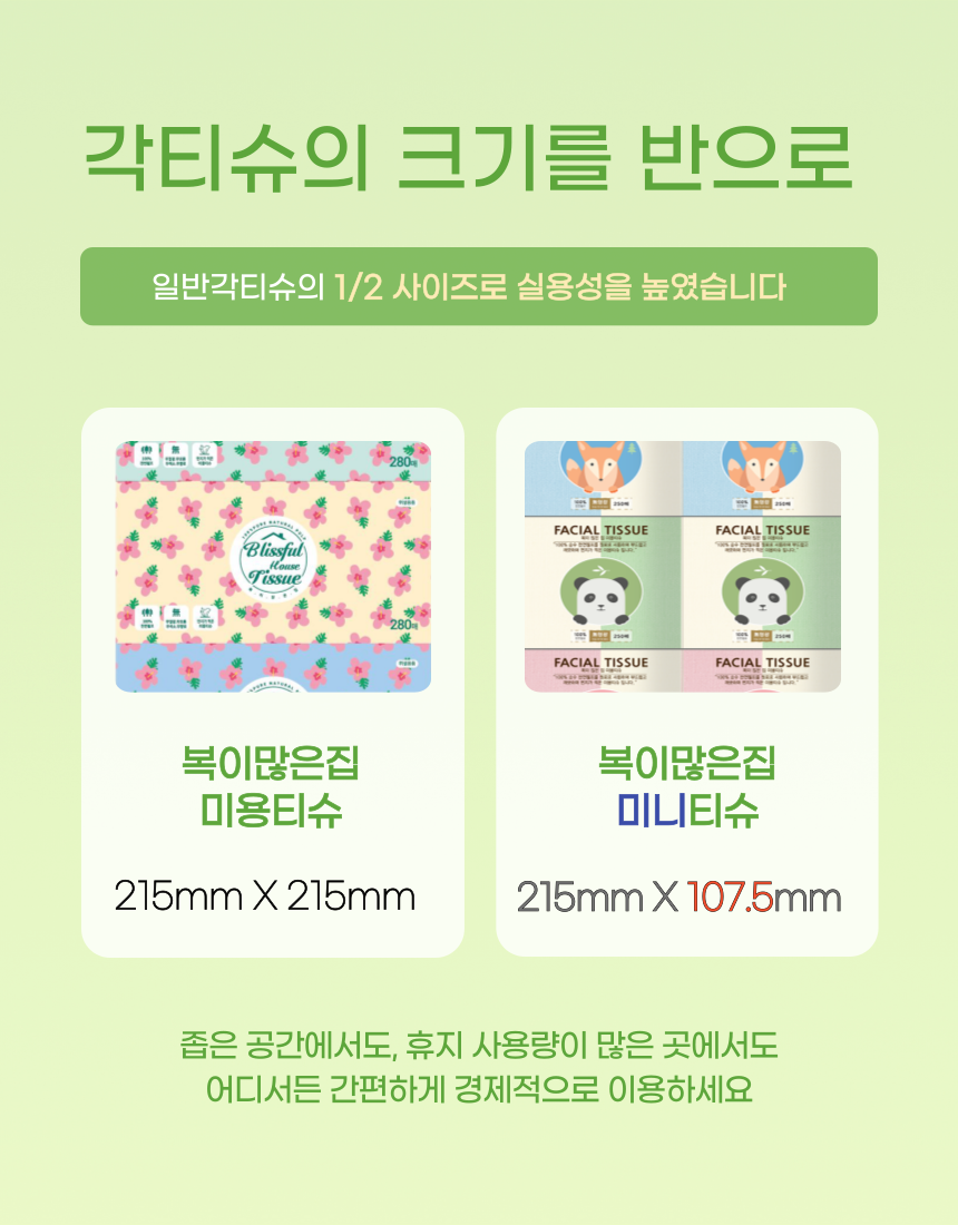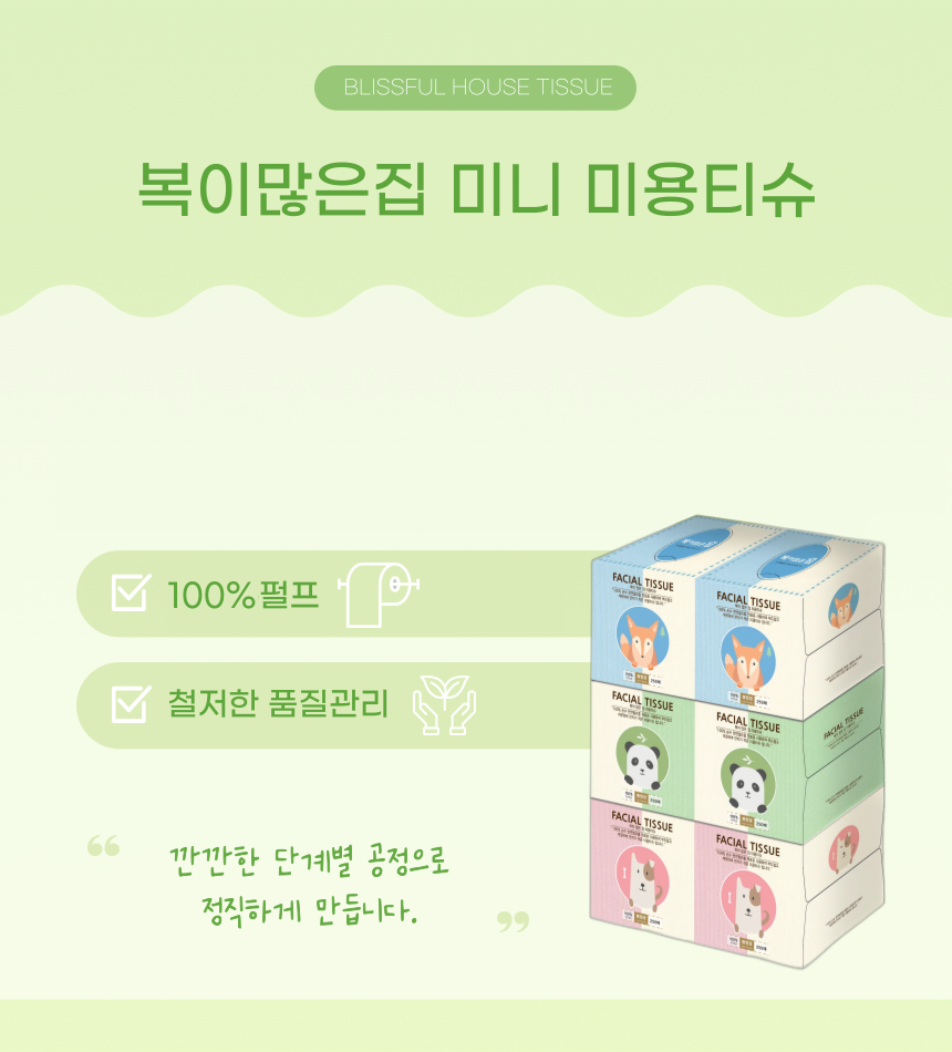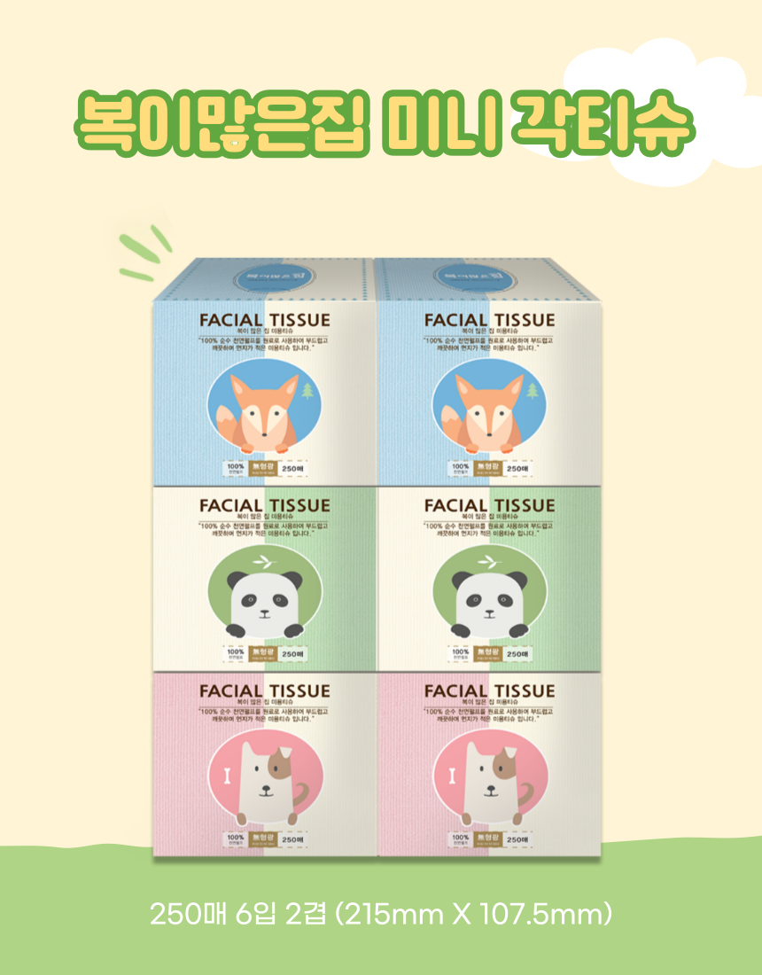 | 품명 및 모델명 | 복이많은집 미니 미용티슈 250매 | 인증/허가 사항 | 위생용품 |