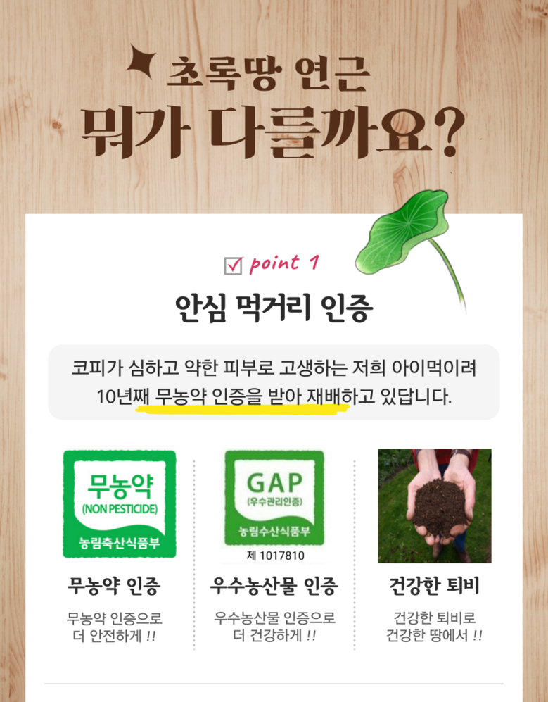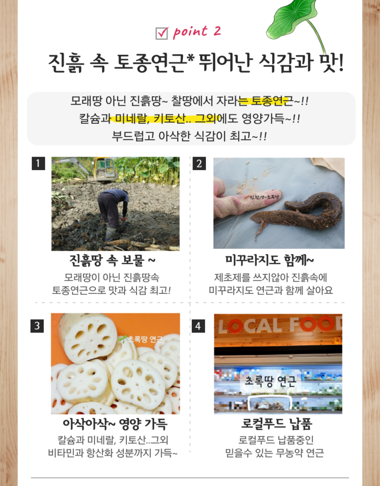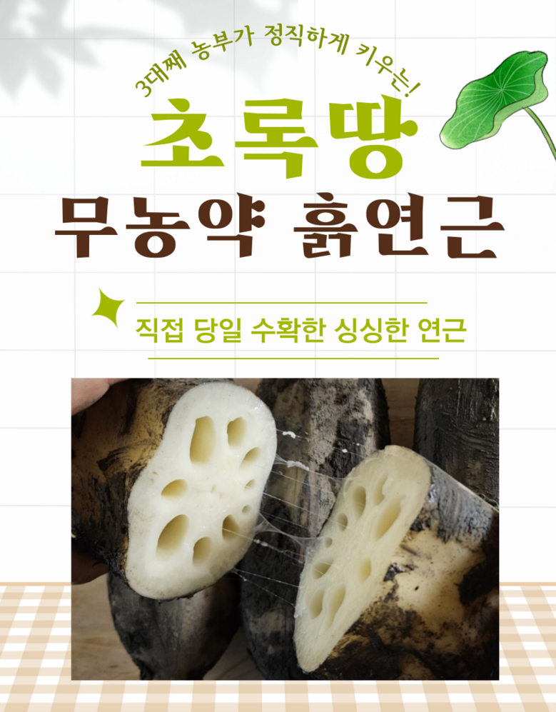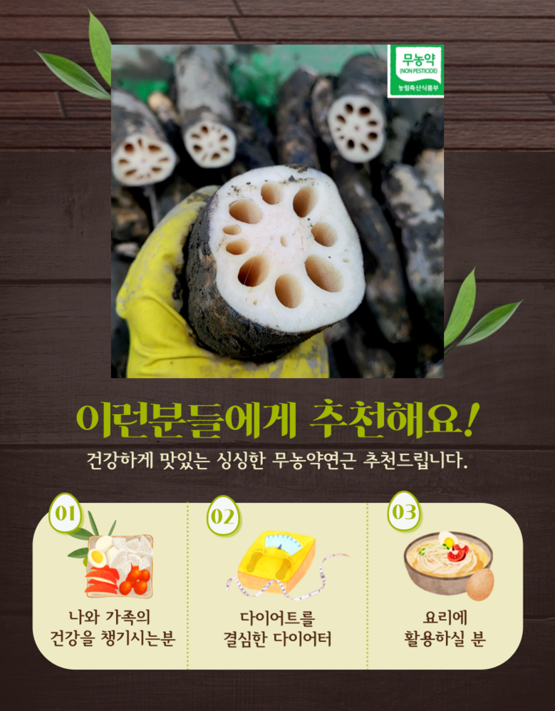 | 품목 또는 명칭 | 무농약 흙연근 | 포장단위별 내용물의 용량(중량),수량,크기 | 흙연근 2kg 이상 |