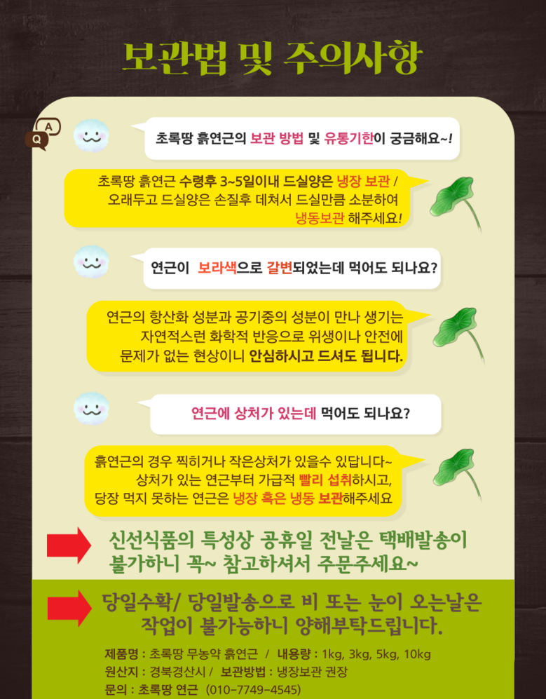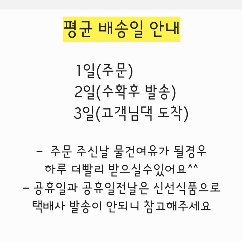 - 보관방법: 수령당일 키친타월로 감싼후 밀페용기로 냉장보관( 7일이내 섭취~/ 오래두고 드실경우 손질후 끓는물에 살짝 데친후 소분하여 냉동보관