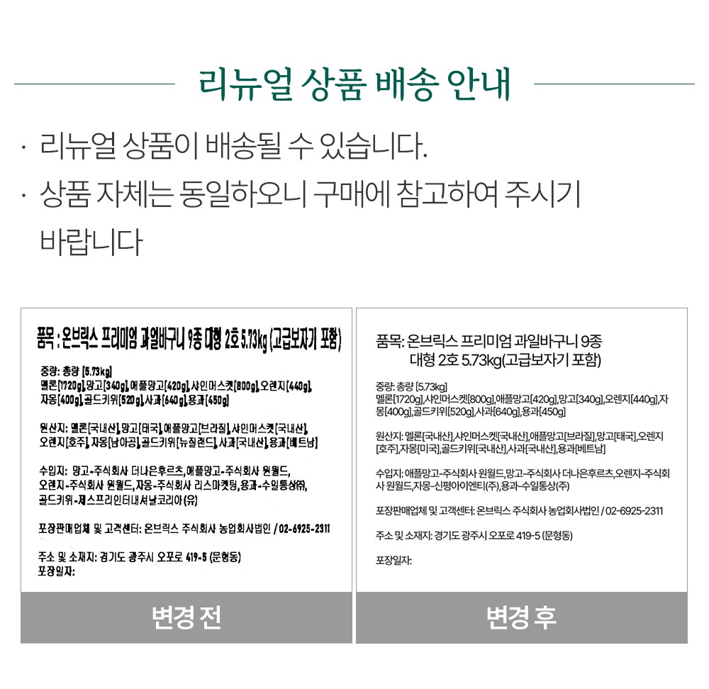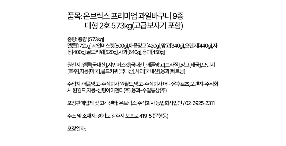 · 산지 수급 상황에 따라 과일의 입수량이 달라질 수 있습니다. 구성이나 총 중량에는 변화가 없으니 안심하고 구매하세요.