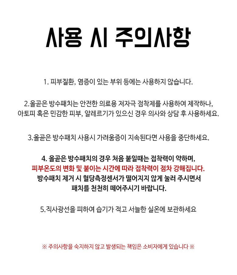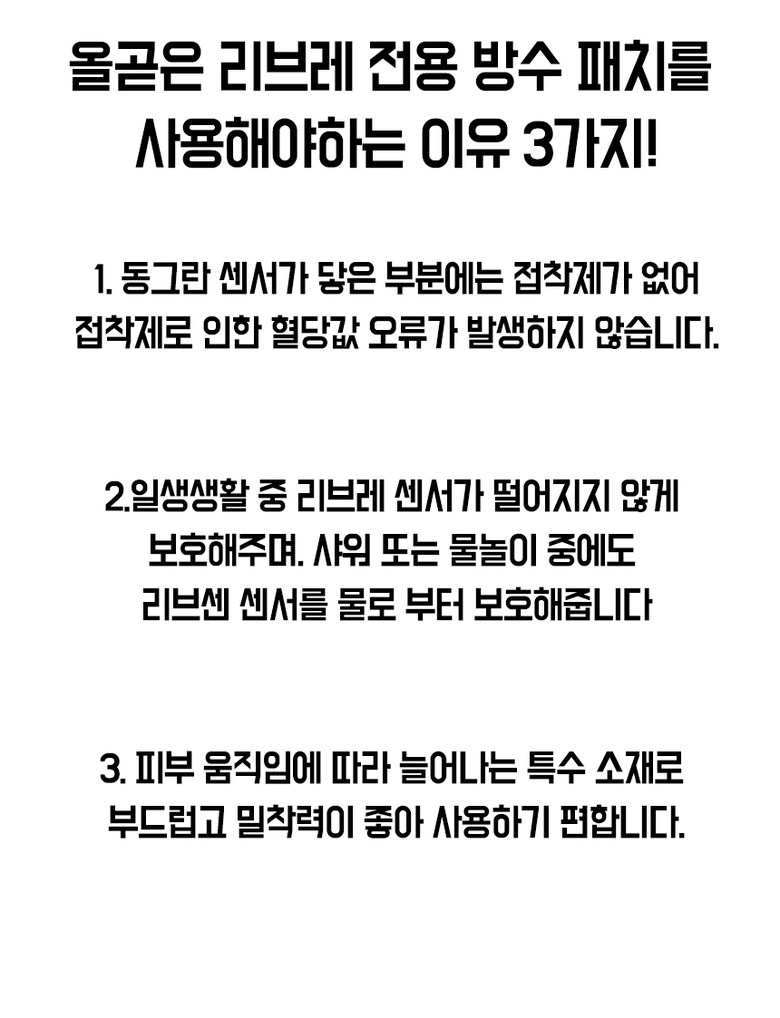 | 품명 및 모델명 | 올곧은 리브레 전용 방수패치 | 인증/허가 사항 | 없음 |