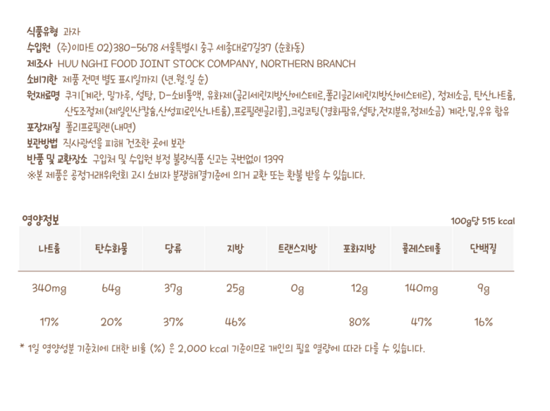 | 제품명 | 상품 상세페이지 참조 | 식품의 유형 | 상품 상세페이지 참조 |