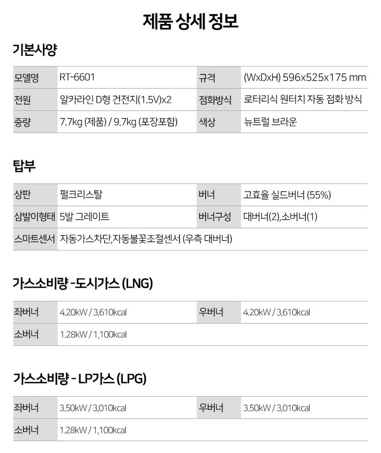 | 제조국(원산지) | 한국 | 제조자(수입자) | 린나이 |