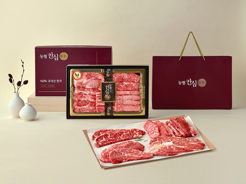 특별한 날을 더욱 빛내줄 선택, 농협안심한우 선물세트입니다. 품질 좋은 한우 중에서도 1++(7)등급으로 엄선했는데요. 구이용 등심, 채끝, 살치살, 부채살, 갈비살 총 5종으로 구성되었죠. 농협안심한우는 농협중앙회에서 관리하는 통합 브랜드로, 엄격한 품질 관리 아래 생산된 한우만 제공하기에 믿고 선물할 수 있어요. 손잡이가 달린 고급스러운 가방을 함께 보내드리니, 지금 떠오르는 소중한 분께 고마운 마음을 전해보세요.
