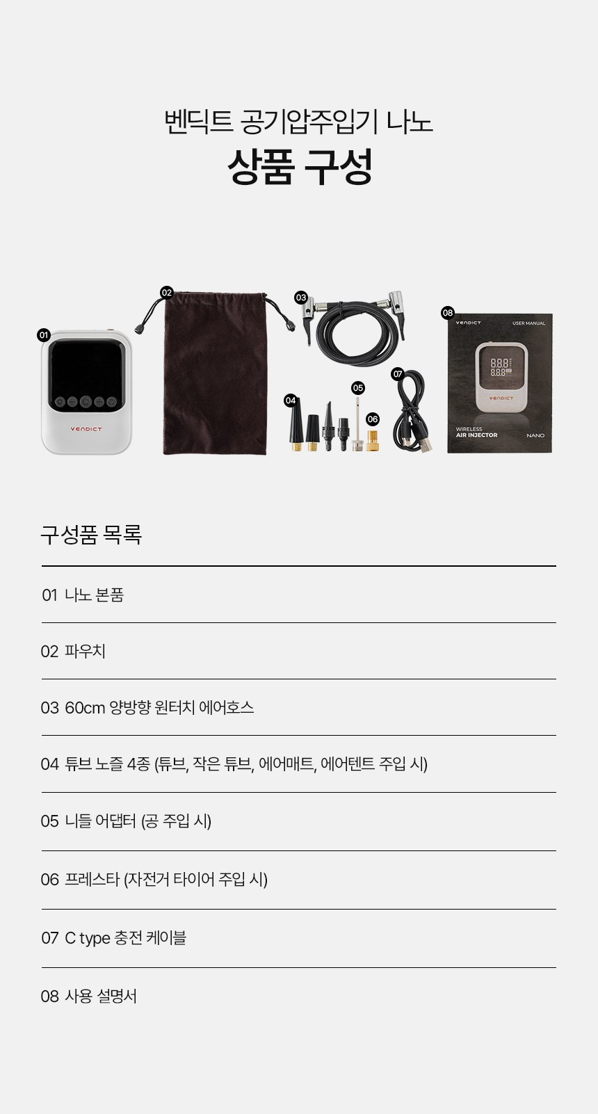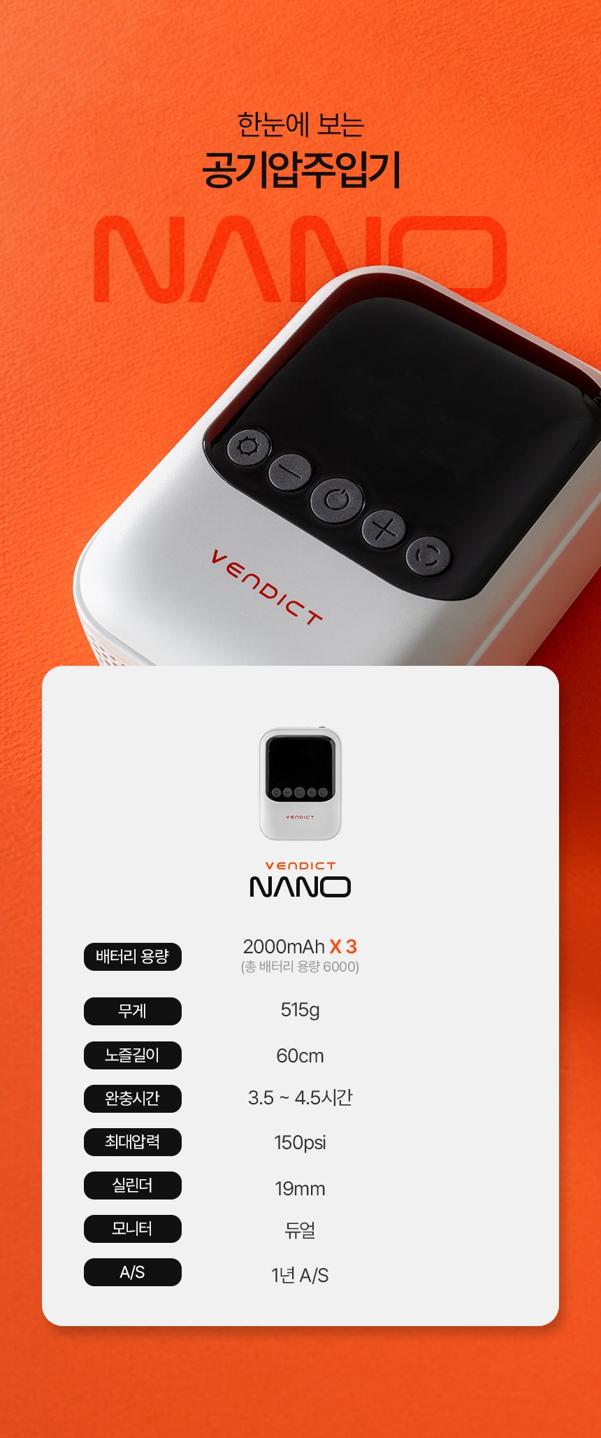 | 품명 및 모델명 | 벤딕트 타이어 공기주입기 에어펌프 나노 6000mAh | 동일모델 출시년월 | 업체미제공 |