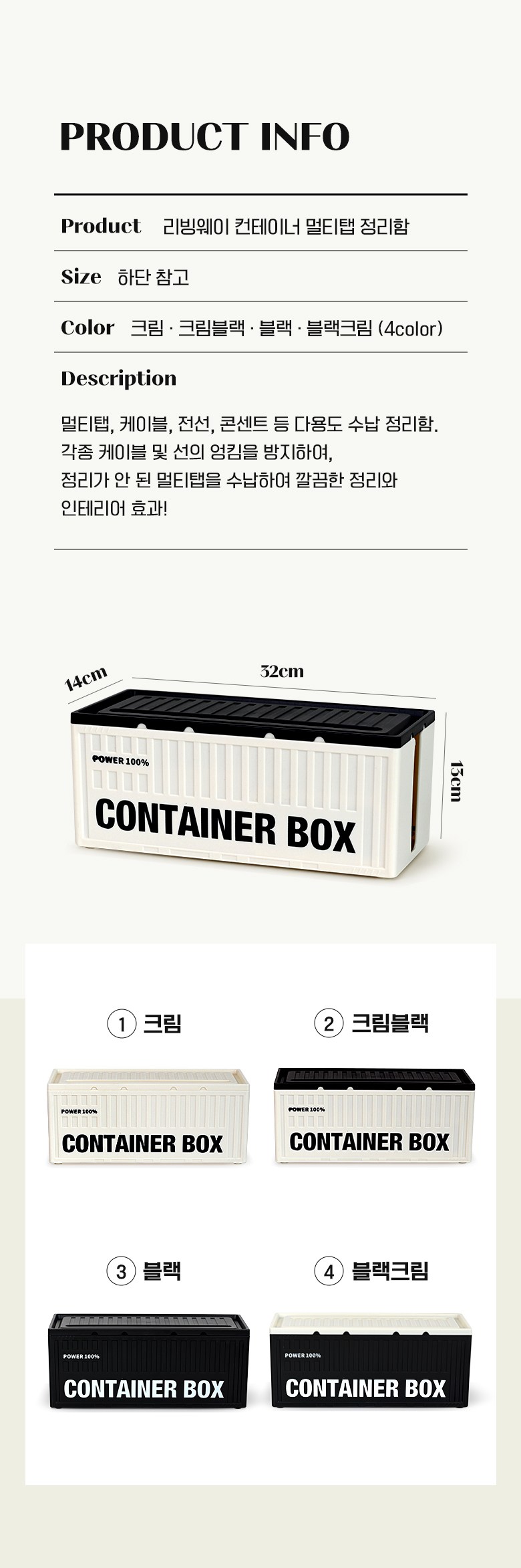 | 품명 및 모델명 | 리빙웨이 인테리어 멀티탭 케이블 정리함 크림 | 인증/허가 사항 | 해당없음 |