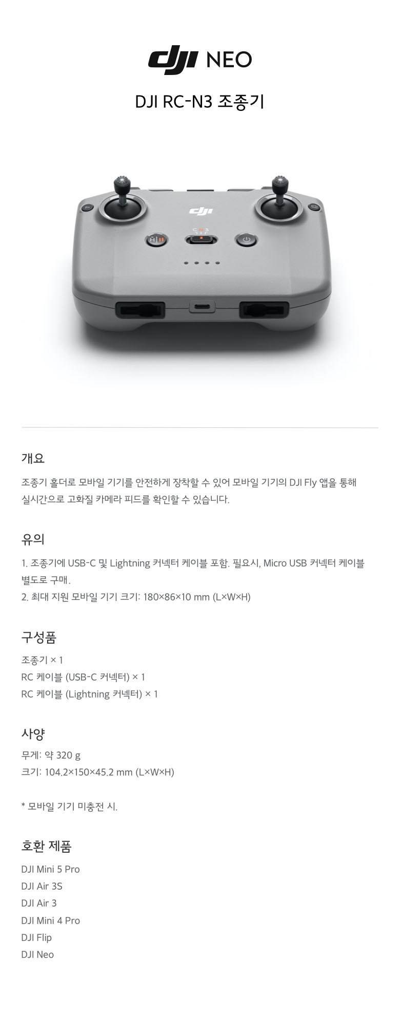 | 품명 및 모델명 | DJI RC-N3 조종기 / RC151 | KC 인증정보 | R-C-dji-RC151 |