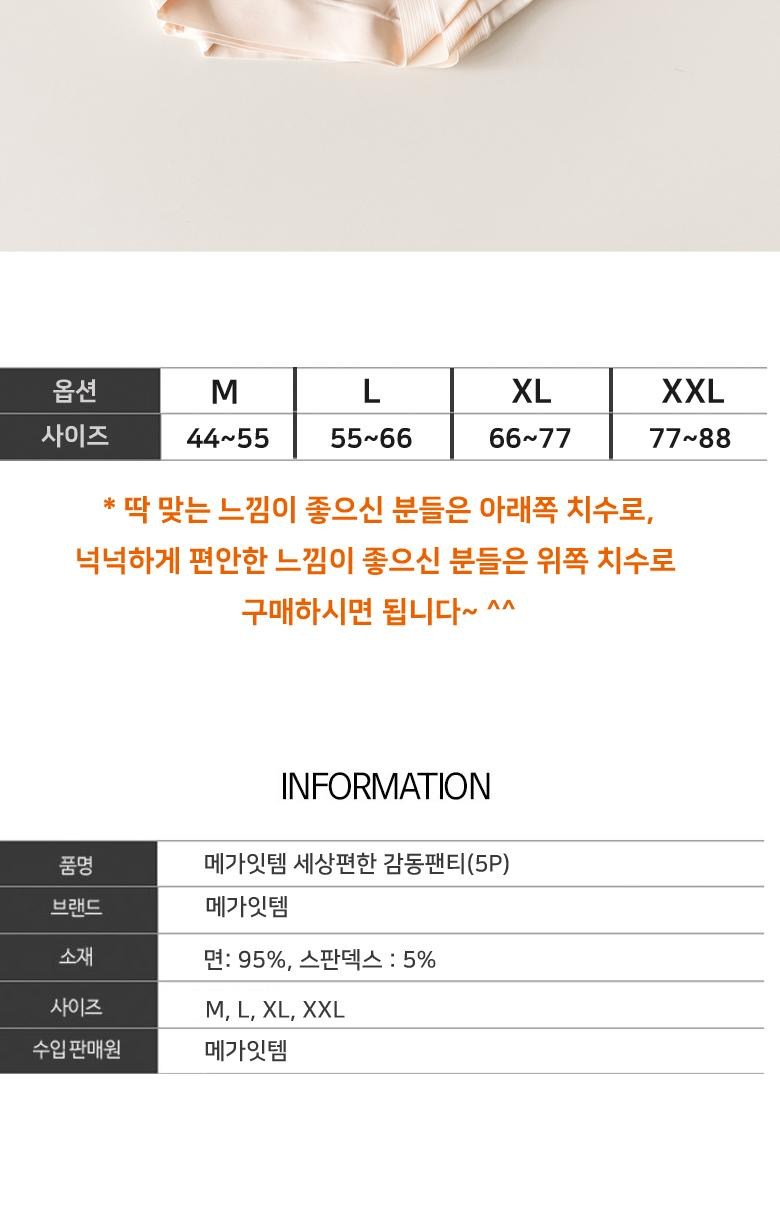 | 종류 | 여성면팬티 | 소재 | 면 91.2%, 스판덱스 8.8% |