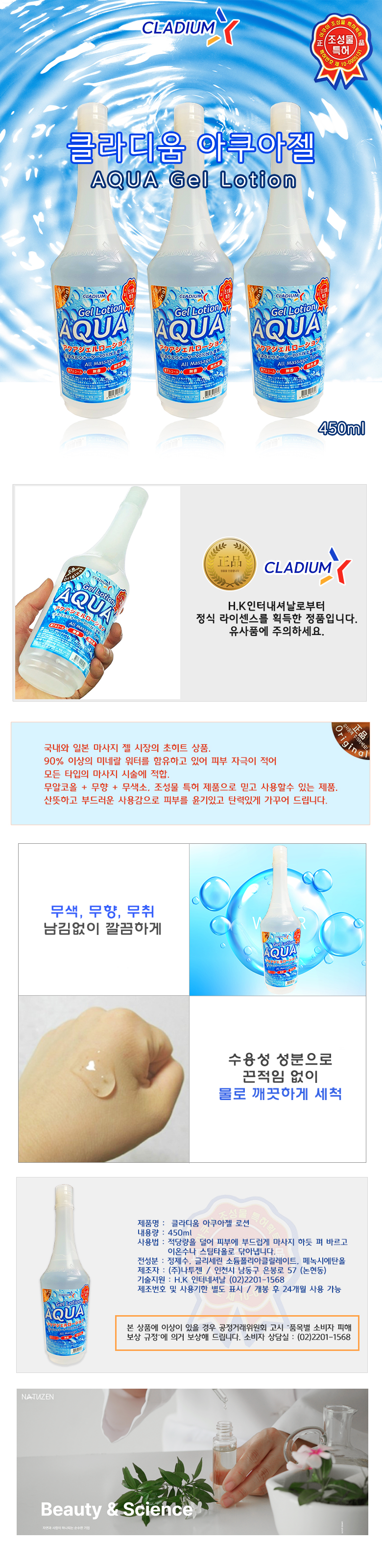 나투젠 클라디움 (CLADIUM) 아쿠아 마사지젤 로션 450ml 조성물 특허 / 유사품 주의 / 100% 수용성 아쿠아젤 / 업소용 대용량 스포츠 마사지 오일, 450ml, 3개