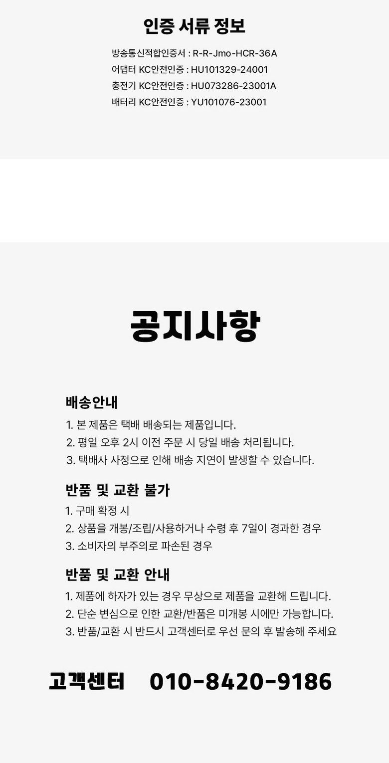 - ㆍ교환/반품에 관한 일반적인 사항은 판매자가 제시사항보다 관계법령이 우선합니다.