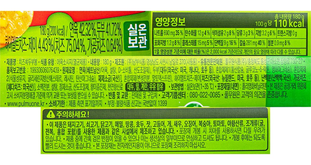 | 포장단위별 내용물의 용량(중량), 수량 | 180g x 2개 | 원재료명 및 함량 | 컨텐츠 참조 |