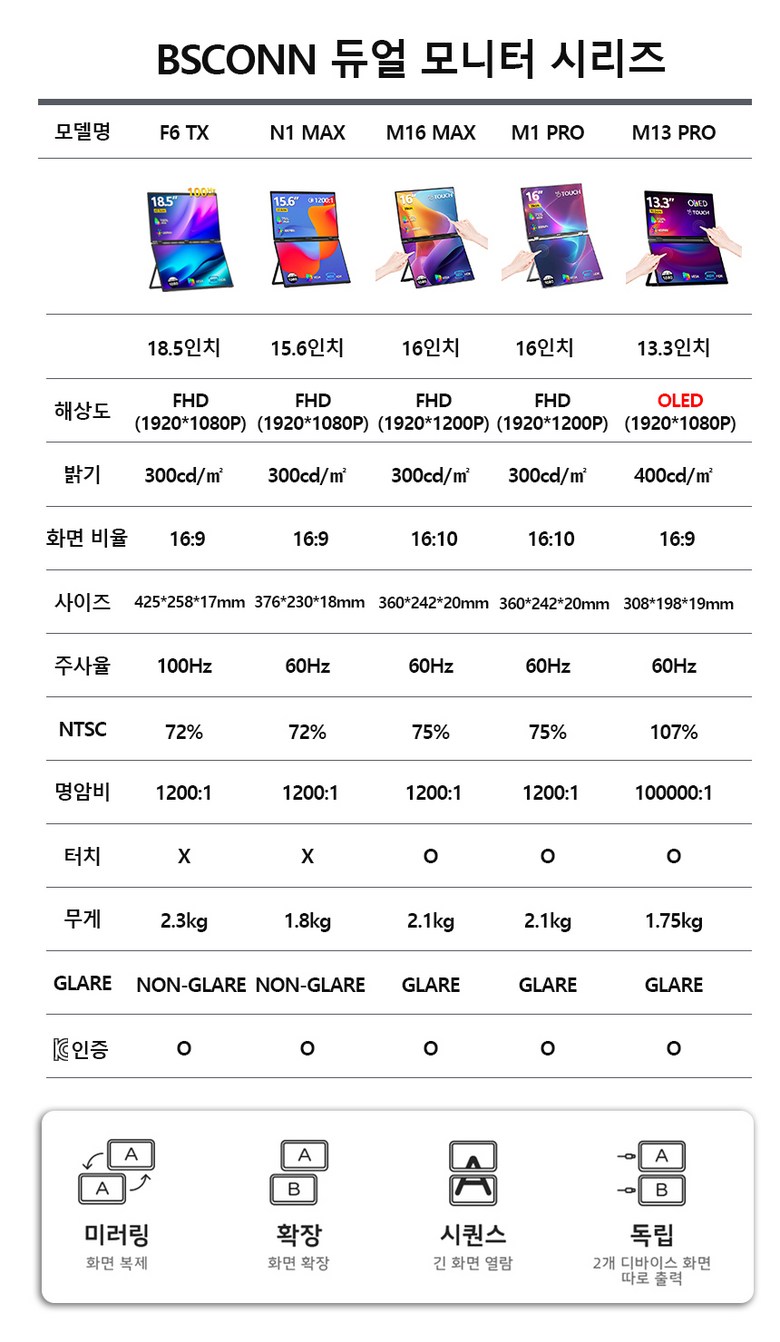 | 품명 및 모델명 | 베쓰콘 16 인치 터치식 듀얼 포터블 모니터 M1 PRO | KC 인증정보 | R-R-aTR-YXD |