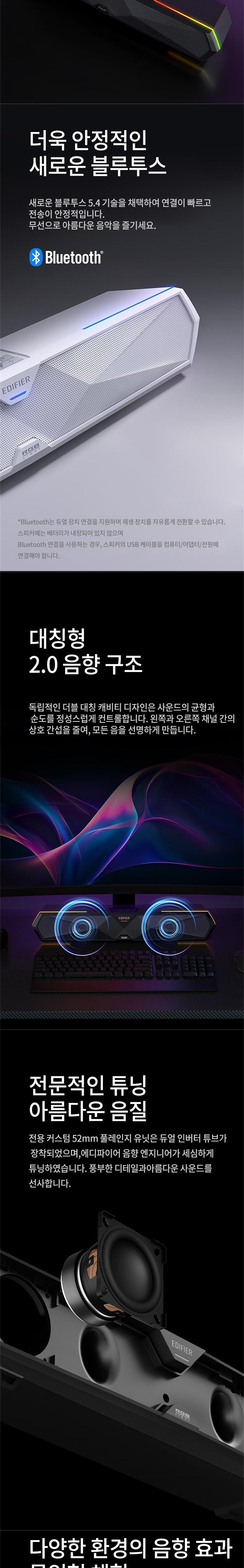 듀얼 52mm 풀레인지 유닛과 듀얼 인버터 튜브가 탑재되어 있으며, USB 사운드 카드 및 블루투스 연결을 지원합니다