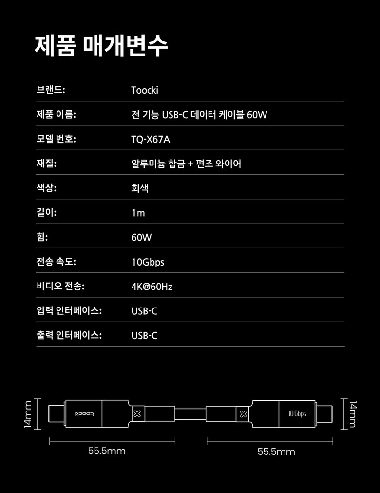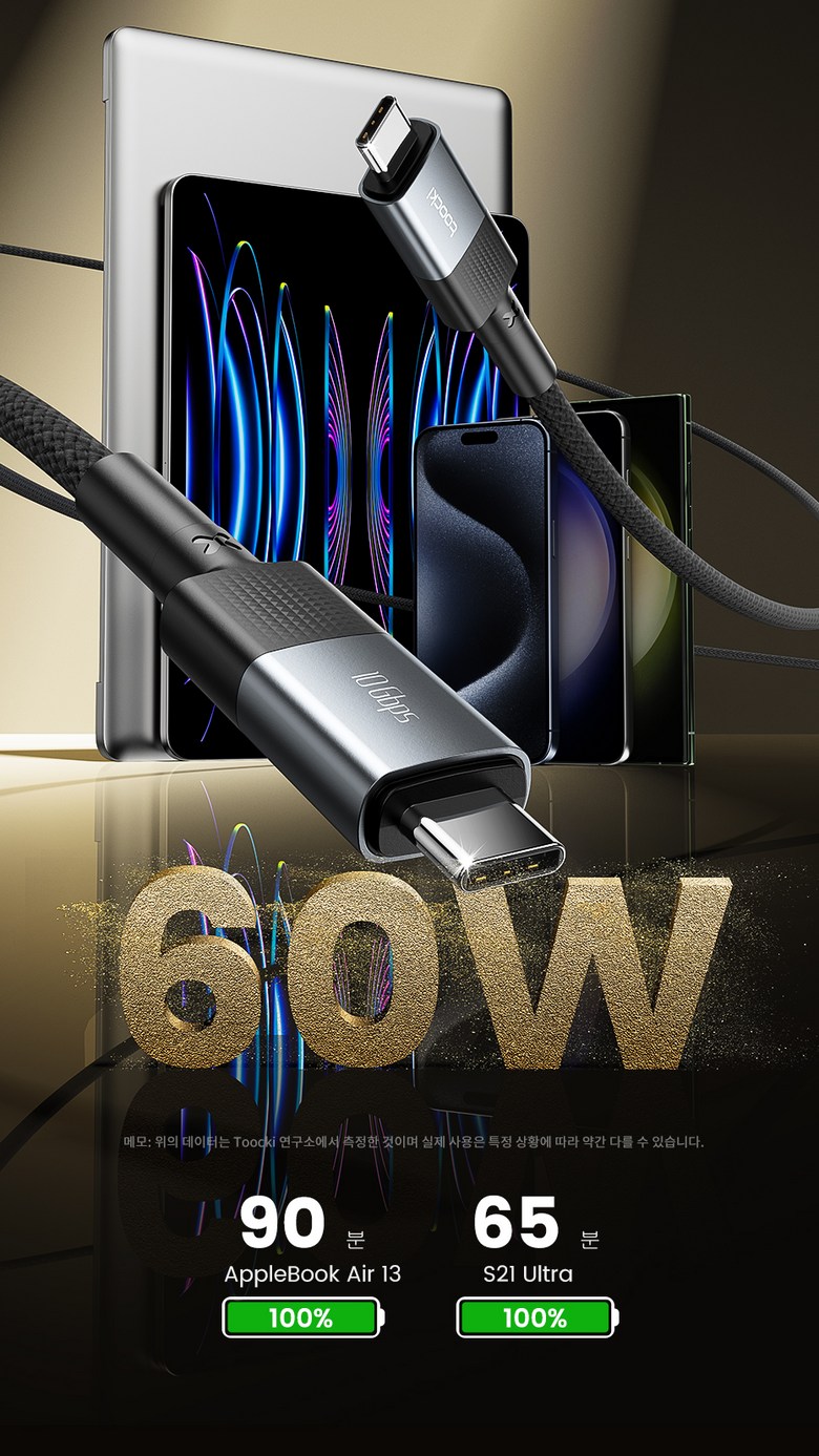 | 품명 및 모델명 | Toocki 투키 Gen2 10Gbps USB3.2 C TO C 60W 초고속 충전케이블 TQ-X67A | KC 인증정보 | 상품 상세페이지 참조 |