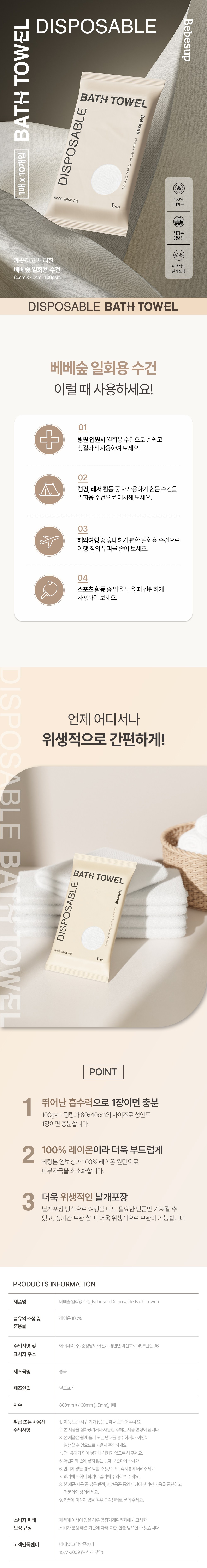 | 품명 및 모델명 | 베베숲 일회용 수건 | 인증/허가 사항 | 해당없음 |