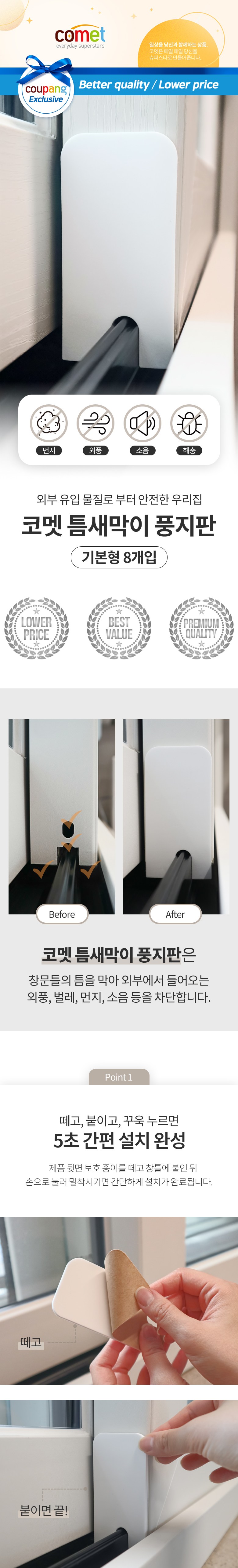 | 품명 및 모델명 | 코멧 틈새막이 풍지판 기본형 8개입 | 인증/허가 사항 | 해당없음 |