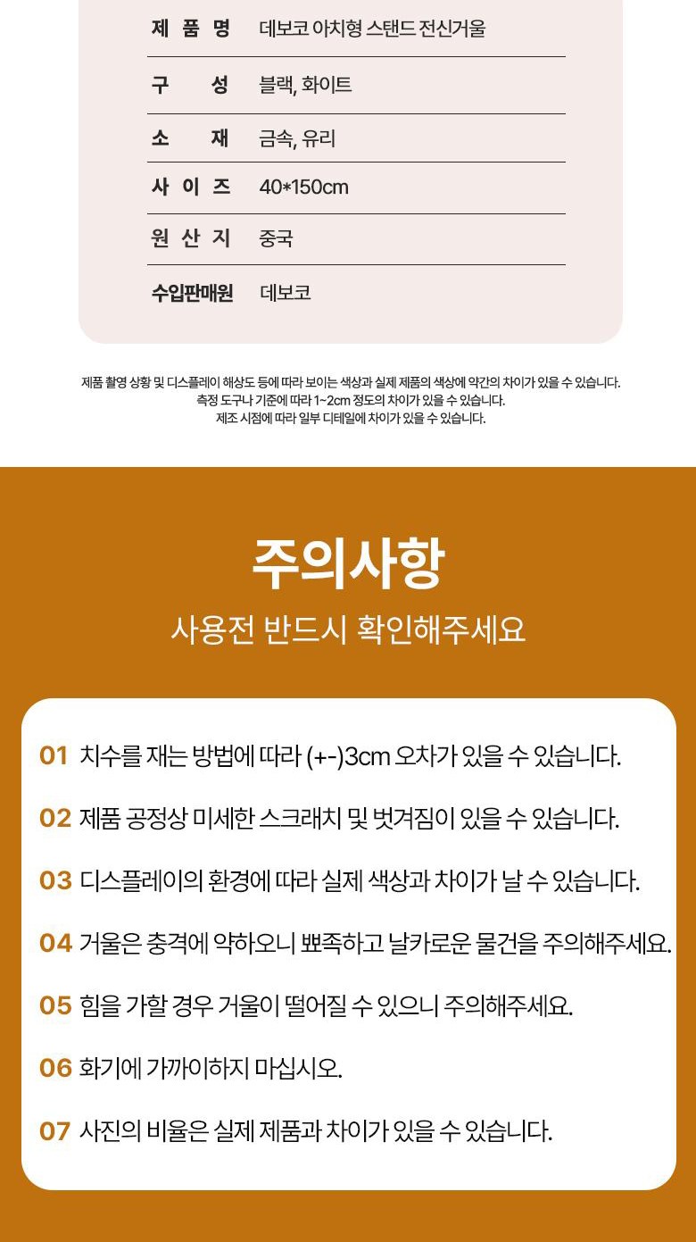 | 품명 및 모델명 | 데보코 아치형 스탠드 전신거울 | 인증/허가 사항 | 해당없음 |