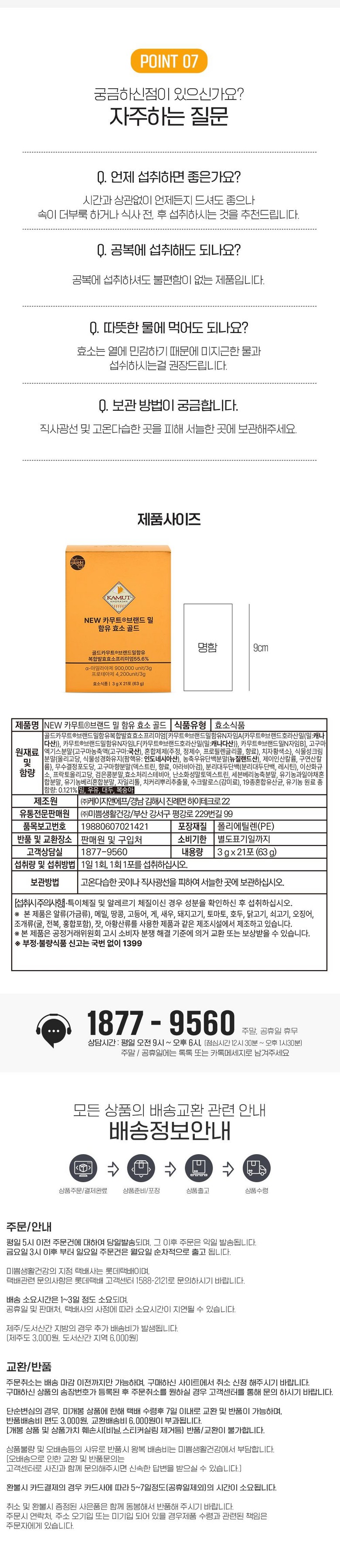 | 제조연월일, 유통기한 또는 품질유지기한 | 제조일로 부터 2년 | 포장단위별 용량(중량), 수량 | 3g x 21포(63g) |