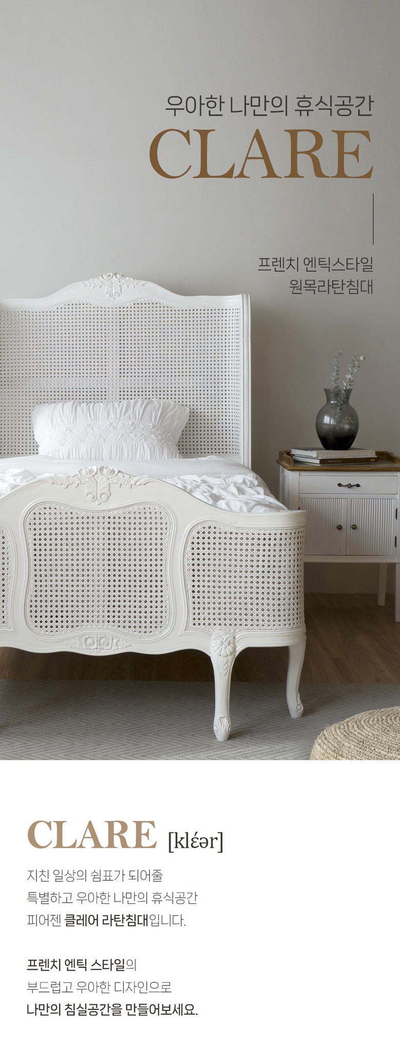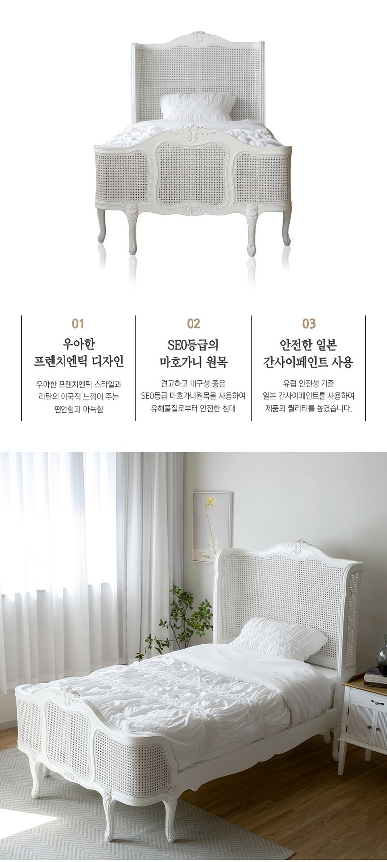 | 품명 | 클레어 프렌치 엔틱 라탄 침대 슈퍼싱글 (주문60일 이상소요) | KC 인증정보 | 해당사항없음 |